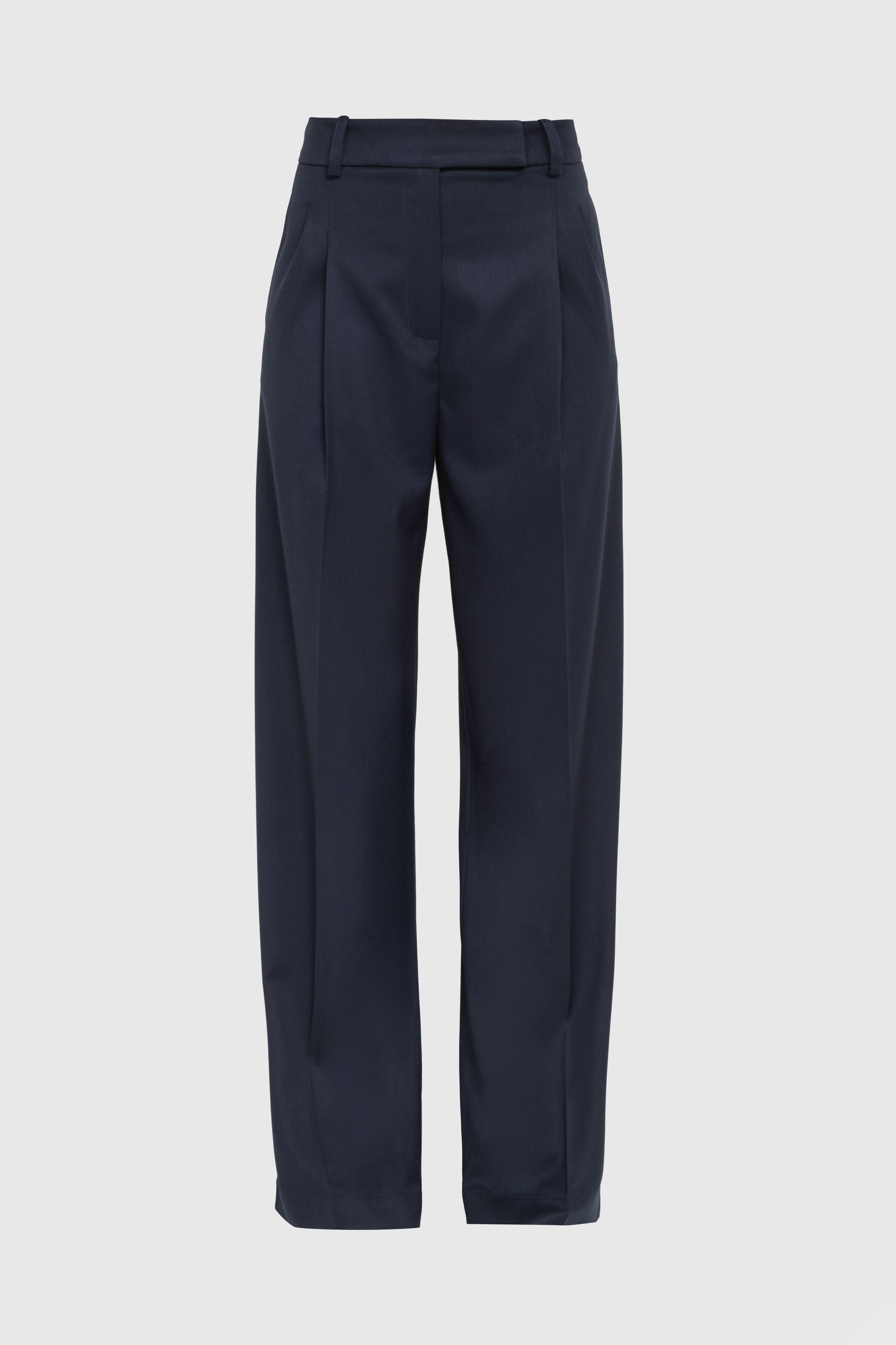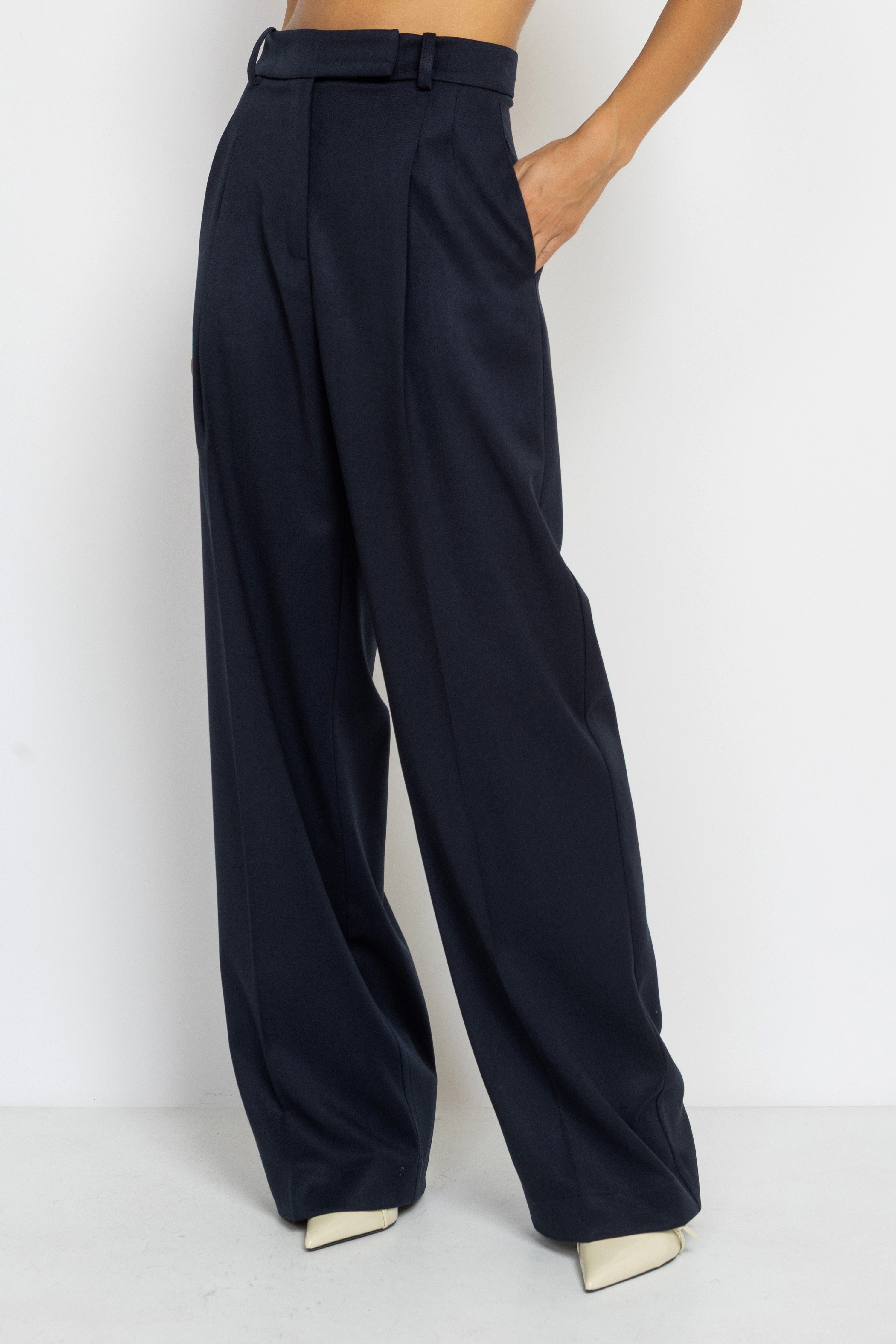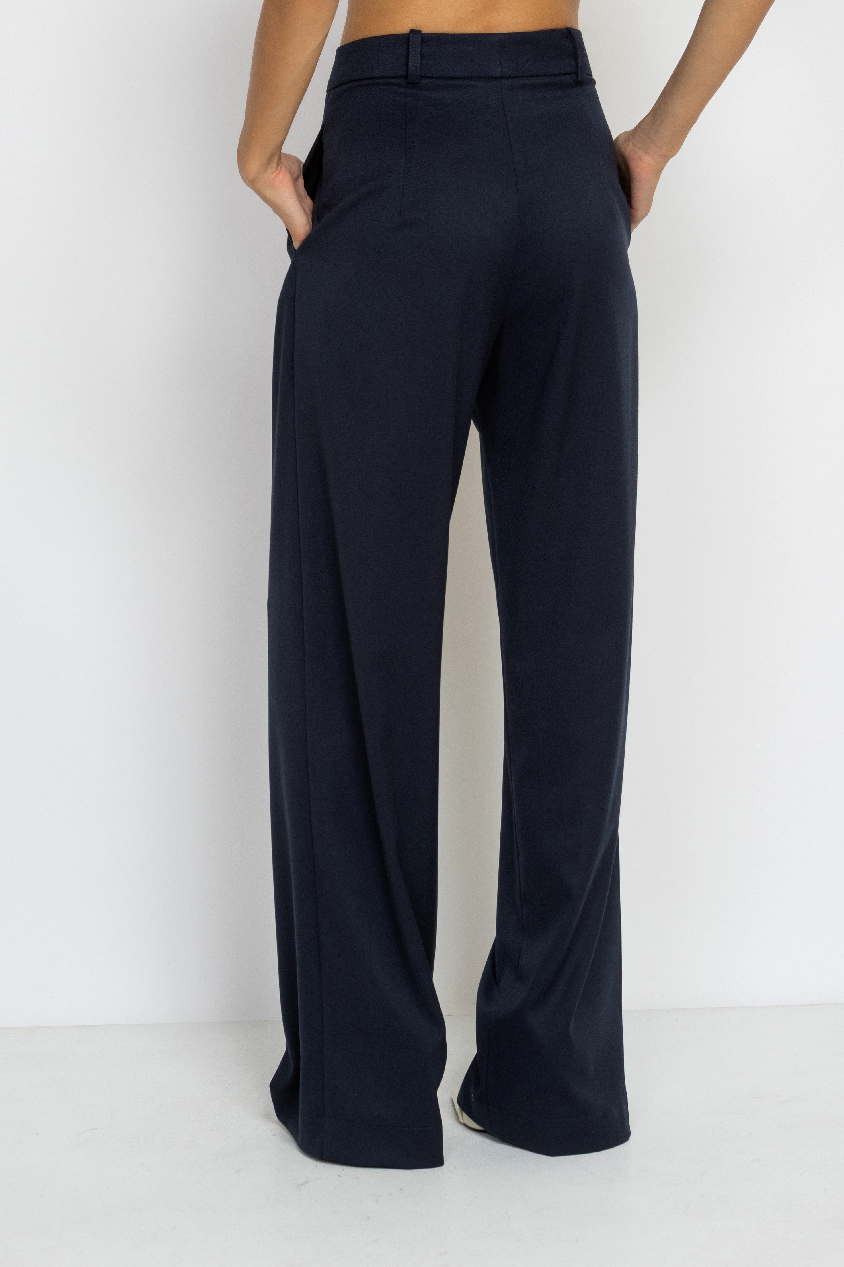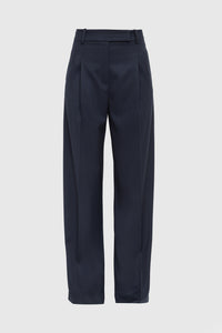 High Rise Wide Leg Viscose Pants in Navy Blue