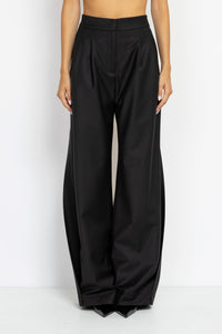 High-Waist Wide-Leg Side-Panel Pants in Black