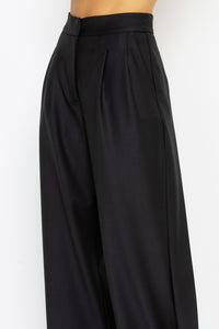 Elevate your wardrobe with these refined high-waist trousers, crafted from a luxurious wool blend for timeless sophistication. Featuring a distinctive frontal closure combining zip and button details, structured pleats for a polished silhouette, and flattering side panels that enhance your natural contours. Practical side pockets add everyday functionality without compromising style. Perfect for both professional settings and refined casual occasions, these trousers embody understated elegance and enduring quality.
