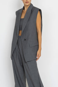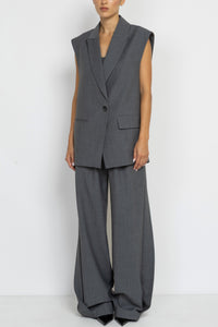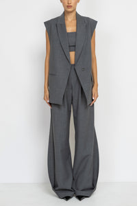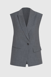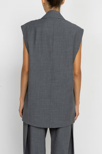 Tailored Grey Wool Longline Sleeveless Blazer
